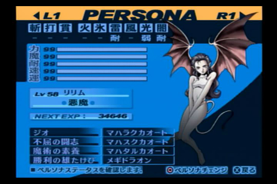 てことで、レベル99のステータスオール99のリリムが完成しました。