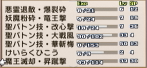 まあ、カンストが99ではなく50が仕様かもしれませんがね(汗ということで、今は、聖バトン技・大戦風を上げているところですね。